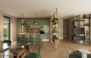 La zona giorno si apre su un giardino privato, perfetto per momenti di relax all'aperto.