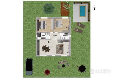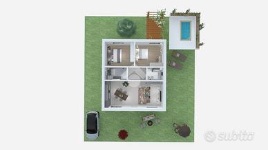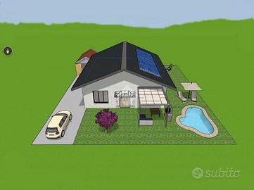 La casa sarà totalmente elettrica, grazie all'impianto fotovoltaico sul tetto e alla caldaia a pompa di calore, con riscaldamento a pavimento per un comfort ottimale in ogni stagione.