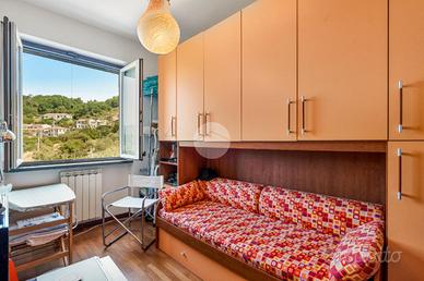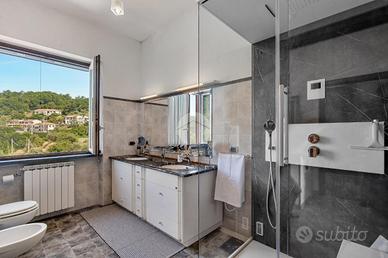 Salendo al secondo piano si accede alla zona notte, composta da tre camere da letto, di cui una dotata di ampia terrazza - ombreggiata da tenda elettrica - con splendida vista sul giardino, sul mare e sulle Alpi Apuane; completa il piano un bagno dotato di ampia cabina doccia multifunzione con bagno turco.