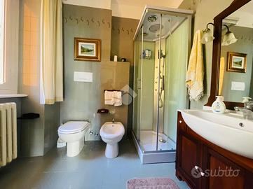 Altro fabbricato di pertinenza con al piano terreno un unico locale uso autorimessa ed al piano superiore zona abitativa. Il riscaldamentoè autonomo con caldaia a metano e seconda caldaia a legna. Pannelli solari.