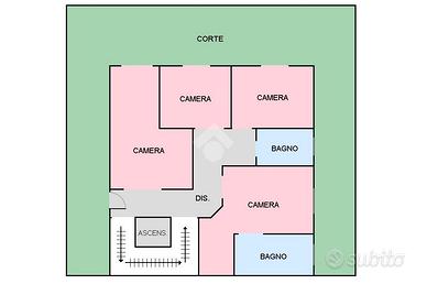 Le altre tre camere, spaziose e luminose, sono servite da un secondo bagno.