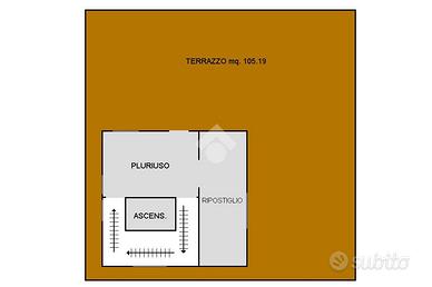 Dal piano superiore si accede ad un meraviglioso terrazzo panoramico di 105 mq, un vero e proprio spazio di relax.