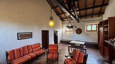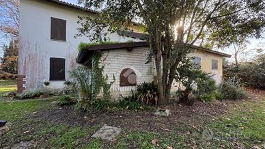 Il casale, che si trova allo stato originale, conserva intatto il fascino rustico: travi a vista, pavimenti in cotto e finestre in legno che inondano ogni stanza di luce naturale. Al piano terra, un accogliente ingresso ci guida verso un salone che anticipa un ampio soggiorno con camino, una cucina, in ambiente separato, che si affaccia su un portico ideale per le cene estive, due bagni e un'altra stanza da sfruttare come studio privato o angolo relax. Al piano superiore, il disimpegno e le quattro camere da letto -- due matrimoniali e due singole -- offrono ampi spazi per tutta la famiglia.