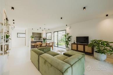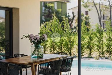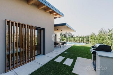 LAZISE - In contesto residenziale recente e tranquillo, a pochi minuti dal lago e dal centro storico, proponiamo villa singola dal carattere naturale, minimalista e dagli spazi ariosi e lucenti.