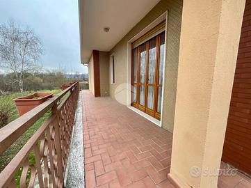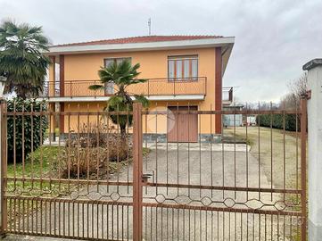 In contesto tranquillo e riservato, a pochi minuti dal centro del paese, proponiamo in vendita una villa indipendente libera su quattro lati, impreziosita da un ampio giardino privato di circa 3.000 mq. e da un comodo cortile. L'ingresso principale si trova al piano terra, dove accoglie una spaziosa tavernetta con accesso diretto al box auto di circa 32 mq e un bagno finestrato completo di doccia. Al primo piano si sviluppa l'abitazione principale, caratterizzata da una distribuzione funzionale degli spazi. L'ingresso separa armoniosamente gli ambienti: la cucina abitabile, dotata di porta finestra con accesso al balcone angolare, è distinta dall'ampio e luminoso soggiorno, valorizzato da due grandi porte finestre anch'esse con affaccio sul balcone angolare e da un'ulteriore finestra che garantisce un'illuminazione naturale. La zona notte comprende tre camere da letto di generose dimensioni: due con finestra e una con porta finestra e accesso al balcone. Il bagno, finestrato, è completo di vasca e predisposizione per la lavatrice. I serramenti sono in legno e il riscaldamento è a radiatori alimentati a GPL. Completa la proprietà un magazzino di circa 150 mq situato all'interno del cortile a € 51.000,00 Una soluzione ideale per chi ama la natura e desidera vivere in un ambiente tranquillo, senza rinunciare alla comodità dei servizi del centro.