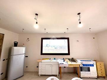 Completa l'abitazione un'ampia zona seminterrata in corso di costruzione. Uno spazio destinato a diversi usi, come taverna o mini appartamento indipendente con bagno.