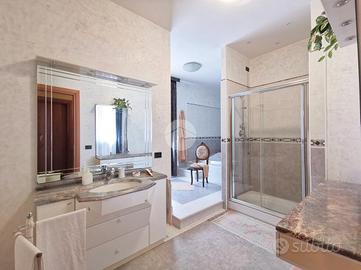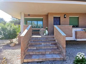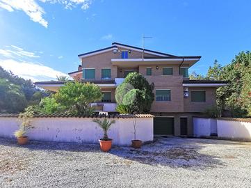 Nella parte antistante, un prato di 800 mq curato da un impianto d'irrigazione automatizzato e computerizzato, alimentato da un pozzo privato.La villa si sviluppa su tre livelli, più un sottotetto, e gode di una esposizione quadrupla che illumina naturalmente ogni ambiente, donando una sensazione di ampiezza e benessere in ogni momento della giornata. Al piano rialzato di 182 mq c.a. oltre 45 mq c.a. di verande e balconi si trova la parte principale dell'abitazione, organizzata in due soluzioni indipendenti, ma comunicanti tra loro, che offrono massima flessibilità d'uso. La prima soluzione vi accoglie con un ingresso elegante che conduce a un'ampia sala impreziosita da un camino. La cucina, spaziosa e abitabile, si affaccia su una veranda che regala una vista aperta sul verde circostante. La zona notte comprende tre camere da letto, due bagni ben rifiniti e un pratico ripostiglio.La seconda soluzione, dispone di un'ulteriore cucina abitabile, una camera da letto, un bagno ed una comoda veranda: un ambiente ideale per ospiti, familiari o per chi desidera uno spazio indipendente senza rinunciare alla vicinanza della casa principale.
