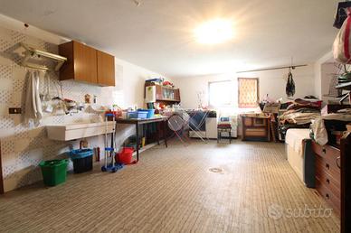 Al piano terra troviamo una comoda zona servizi composta da tavernetta con cucina di servizio, bagno finestrato con doccia e camera di servizio, oltre ad una lavanderia e un doppio garage con spaziosa cantina adiacente.