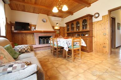 Entrando dall'ingresso ci troviamo nell'ampia zona giorno composta da un luminoso soggiorno con camino e una grande cucina abitabile con camino. Salendo un paio di gradini arriviamo nella zona notte composta dalla camera padronale con bagno privato finestrato e cabina armadio, altre 2 camere oltre ad un ulteriore bagno finestrato con vasca.