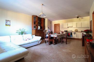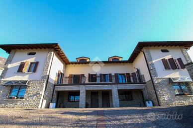 Al piano terra, quattro differenti ingressi ci conducono al disimpegno che ci permette di accedere ai diversi ambienti. A sinistra troviamo la zona giorno composta da sala da pranzo con cucina a vista e salotto con camino a legna. Tramite porta blindata è possibile accedere a uno dei terrazzi che circondano la soluzione.