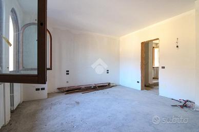 A destra troviamo un'ambiente, speculare a quanto precedentemente descritto, in cui, sono già presenti gli impianto elettrico, l'impianto idraulico e l'impianto di riscaldamento; tramite la posatura del pavimento sarà possibile ricavare tre camere da letto e due bagni.