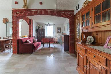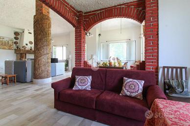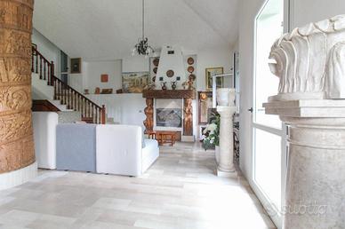Al piano terra, troviamo una spaziosa e luminosa zona giorno, ornata da colonne e camino a legna, una cucina separata abitabile, un'ampia sala da pranzo e un'ulteriore locale, adattabile in base alle proprie esigenze.