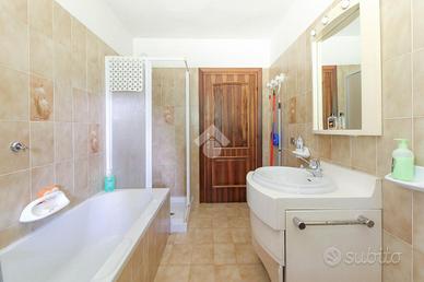 Tramite scala interna raggiungiamo la zona notte al piano primo, composta da tre camere da letto matrimoniali e da un bagno finestrato con sanitari in ceramica e vasca.