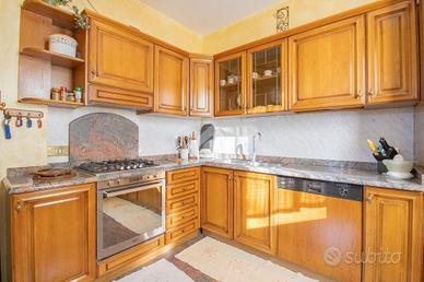 Tramite scala interna, raggiungiamo il piano secondo, dove è presente la seconda unità abitativa, un appartamento quadrilocale composto da una cucina separata e da un'ampia zona giorno, che ci fornisce l'accesso al terrazzo vivibile.