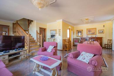 In una posizione tranquilla, lontana dal traffico ma comunque comoda ai principali servizi, proponiamo in vendita una villa bifamiliare, edificata negli anni '90, disposta su più livelli, immersa in un contesto riservato, con ampio terreno di proprietà di circa 18.000 metri quadrati.