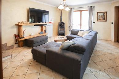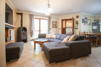 In un contesto residenziale tranquillo, questa villa libera su quattro lati di recente realizzazione è pensata per offrire benessere, sicurezza e praticità a chi cerca una casa pronta da vivere. La posizione è ideale: a soli 500 metri dal centro del paese, comodamente raggiungibile con una passeggiata di cinque minuti a piedi. All'esterno, un curato giardino a prato circonda la proprietà. C'è spazio per un orto, una zona barbecue, un angolo relax con piscina e sdraio e magari qualche gioco per i bambini -- che siano figli o nipoti, apprezzeranno sicuramente questo angolo di svago all'aria aperta. Il cortile interno offre posti auto comodi, mentre il box doppio affiancato, al piano giardino, garantisce accesso indipendente ai veicoli ed è perfetto anche come officina per gli amanti del fai-da-te. L'abitazione si sviluppa principalmente al piano terreno, come nelle case moderne più funzionali: l'ingresso si apre su un'ampia zona giorno con cucina. Un disimpegno conduce alla zona notte con due camere da letto, comode e accessibili senza barriere architettoniche -- un vantaggio concreto anche in ottica futura -- e un bagno finestrato con doccia, accogliente e ben rifinito. Una scala interna ben rifinita accompagna al piano superiore, dove si trovano altre due camere - di cui una con affaccio su terrazzo - perfette per famiglie più numerose o per creare spazi dedicati a studio, ospiti o tempo libero. Il livello è completato da un ambiente destinato a lavanderia ed secondo bagno, compatto ma funzionale, anch'esso con doccia. E infine il piano interrato: uno stupore nello stupore. Oltre 60 mq in un unico ambiente -- la tavernetta che hai sempre sognato. Una vera e propria sala per feste, cene con amici e ritrovi familiari. Il protagonista? Un forno a legna che regala calore e sapore alle serate più conviviali. Qui, tavolate da oltre 30 persone non sono un'ipotesi, ma una promessa: richiederanno un po' d'impegno, ma sapranno restituirti altrettanta soddisfazione e vivaci m
