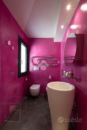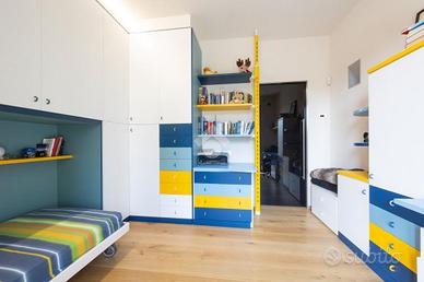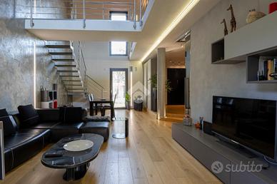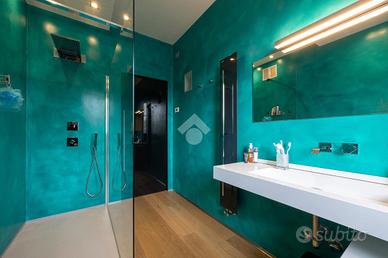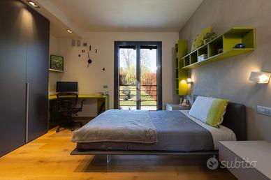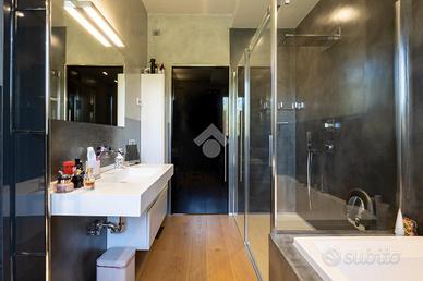 Tramite la moderna e scenografica scala si accede al piano superiore, dove tramite un corridoio in parte aperto sul soggiorno e delle armadiature su misura incassate nella parete, si accede alla zona notte, dove troviamo tre camere con tagli matrimoniali e due ampi bagni entrambi finestrati con la presenza di una vasca da bagno, due generosi piatti doccia 'walk in' oltre ai sanitari sospesi.