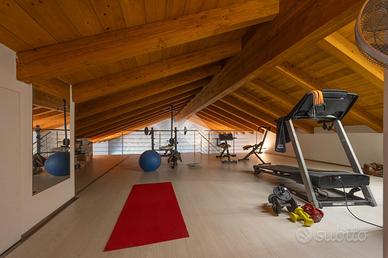 Tramite una seconda scala, si accede al piano mansardato con travi a vista, dove troviamo un ampio locale open space, attualmente utilizzato come palestra.