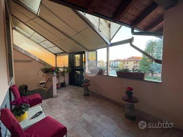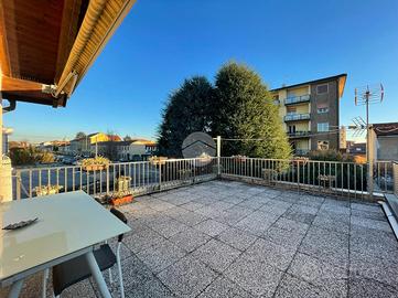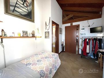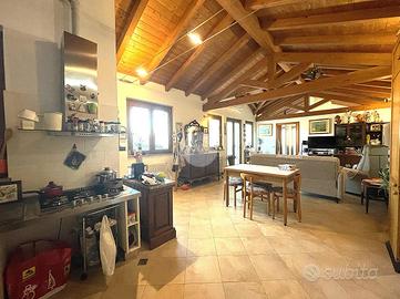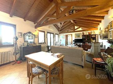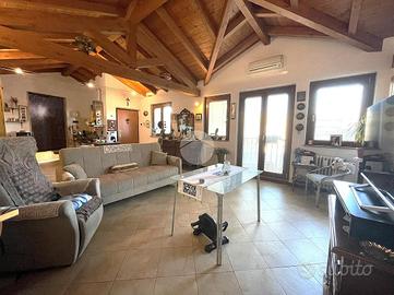 La zona giorno è composta da un soggiorno con cucina open - space e travi a vista con accesso diretto al grande terrazzo vivibile esposto verso sud, quattro ampie camere da letto di cui una con bagno padronale e il secondo bagno anch'esso finestrato.