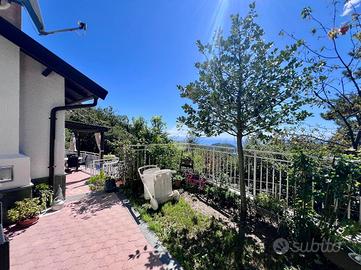 A soli 10 km dal centro di Finale Ligure, e a pochi chilometri al centro di Magliolo, villa indipendente su quattro lati con ampio giardino e da un terrazzo che regala un affascinante vista mare. La proprietà è disposta su un unico livello ed è composta da un luminoso soggiorno, una cucina abitabile, due spaziose camere matrimoniali, una camera singola e due bagni finestrati, di cui uno dotato di doccia. Al piano terra un comodo box auto e una grande cantina. Questa villa rappresenta una rara opportunità per chi cerca una casa indipendente con vista mare, immersa nella natura ma a pochi minuti dal mare e dai servizi di Finale Ligure .