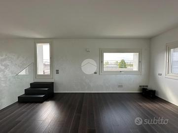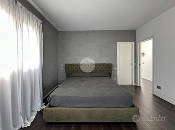 A donare ulteriore prestigio sono le due aperture a doppia altezza che garantiscono illuminazione ed eleganza all'intero corpo scala. Al piano primo è presente uno spazio adibito a palestra prendisposta per installazione di una sauna (lo stesso spazio può essere adibito a camera da letto), una camera singola con bagno riservato e una camera matrimoniale con balcone, bagno e cabina armadio esclusiva. Lo spazio palestra può essere trasformato in un'ulteriore camera da letto. Il corridoio del piano primo è collegat