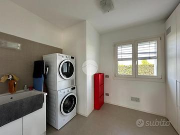 Al piano terra è presente lo studio/camera da letto, il bagno completo di doccia, la zona autorimessa, la lavanderia ed il locale tecnico.
