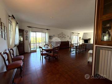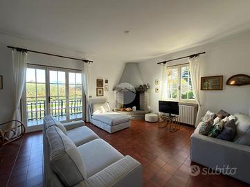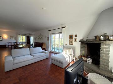 La villa si sviluppa prevalentemente su un unico livello principale, ingresso in una splendida zona living di circa 57 mq, ampia, luminosa e impreziosita da un elegante camino. Le grandi vetrate creano una raffinata continuità tra interni ed esterni, regalando una vista incantevole sul verde circostante.