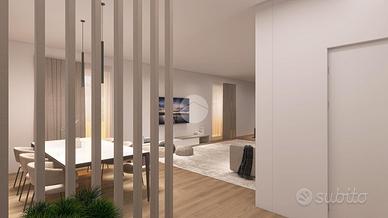 La zona notte ospita tre camere matrimoniali, ampie e silenziose, pensate per offrire il massimo comfort e privacy, oltre a due bagni finestrati, uno con doccia doppia e l'altro con vasca, entrambi rifiniti con cura.