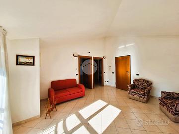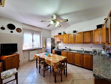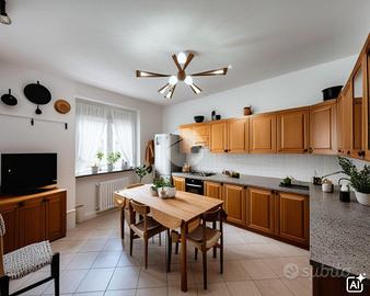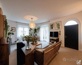 Il piano terra, di circa 140 mq, si apre su un luminoso soggiorno che affaccia su un balcone e su un porticato collegato direttamente al giardino, perfetto per momenti di relax all'aperto. La cucina abitabile, di circa 13 mq, è spaziosa e funzionale.