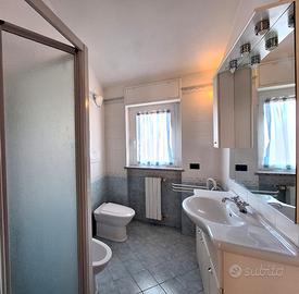 Il piano seminterrato, di circa 130 mq, ospita una taverna finestrata con camino e forno a legna, ideale per serate conviviali. Questa zona è suddivisa in molteplici locali, tra cui cantine, lavanderia e ripostiglio. La taverna è direttamente collegata a un box doppio in larghezza.