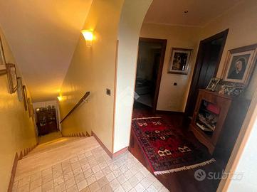 La proprietà dispone di giardino perimetrale di circa 500 mq, in parte verde e in parte mattonato, terrazzo panoramico di circa 50 mq con accesso tramite scala esterna, cantina di circa 20 mq e ripostiglio privato.