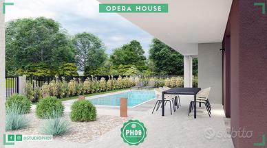 Progetto per signorile villa singola a piano terra dotata di circa 740 mq di giardino e composta da porticato d'ingresso che le dona importanza, ampia zona giorno in open space con grandi vetrate verso il portico e giardino dove mangiare o prendere il sole, due camere da letto matrimoniali, due bagni e garage comunicante molto profondo oltre a secondo posto auto coperto a fianco. L'abitazione verrà realizzata seguendo tutte le più moderne tecnologie costruttive come riscaldamento a pavimento in pompa di calore e condizionamento, impianto fotovoltaico adeguato, isolamento acustico, cappotto termico, serramenti al alta efficienza con microventilazione e ampie pobbilità di scelte di finiture extra capitolato! PISCINA NON INLCUSA - POSSIBILITA' DI AVERE ANCHE LA TERZA CAMERA O ULTERIORI PERSONALIZZAZIONI - CAPITOLATO IN UFFICIO DA CONCORDARE!
