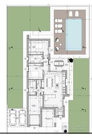 Progetto per signorile villa singola a piano terra, composta da porticato d'ingresso che le dona importanza, ampia zona giorno in open space con grandi vetrate verso il portico (con possibilità di piscina) e giardino dove mangiare o prendere il sole, due camere da letto, due bagni e garage comunicante e posto auto coperto. L'abitazione verrà realizzata seguendo tutte le più moderne tecnologie costruttive come riscaldamento a pavimento in pompa di calore e condizionamento idroponico, impianto fotovoltaico, isolamento acustico, cappotto termico da 15 cm, serramenti al alta efficienza con microventilazione e ampie pobbilità di scelte di finiture extra capitolato!