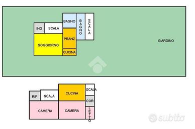 Villa singola divisa in due appartamenti indipendenti, realizzata partire dal dopoguerra e ristrutturata e ampliata negli anni 80, completa di tettoia per tre auto e grandissimo giardino. La prima abitazione si compone di cucina, camera matrimoniale e cameretta, bagno e disimpegno-vanoscale; l'altra abitazione è dotata di un ampio soggiorno, una cucina con tinello, ingresso verandato, bagno, camera matrimoniale e ripostiglio. Completano la villa il porticato che da accesso ai due appartamenti sotto il quale si può mangiare all'aperto e il grandissimo giardino in parte piantumato e in parte edificabile. L'immobile non necessita di lavori urgenti in quanto sempre tenuto in buono stato ed è perfetto per due famiglie di fratelli o genitori e figli.
