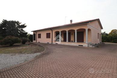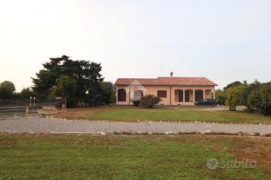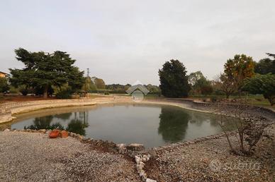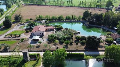 VENDITA DI NUDA PROPRIETA'! MA SI VALUTA ANCHE LA VENDITA DELL'INTERA PROPRIETA' IDEALE COME LOCATION PER EVENTI! DESCRIZIONE IMMOBILE Signorile villa singola di circa 180 mq calpestabili, su lotto di 17.990 mq, disposta tutta a piano terra e circondata da un immenso giardino con 6 pertinenze e un ampio lago di 4.500 mq, che potrebbe essere reso balneabile. La proprietà è così composta; dopo aver camminato lungo un porticato troviamo l'ingresso, ampio soggiorno con grandi vetrate verso il parco, un corridoio che ci porta in cucina abitabile comunicante a un porticato e ingresso sul retro, due ampie camere da letto matrimoniali gemelle, un bagno padronale, una terza e una quarta camere da letto singole, una delle quali connesse ad un piccolo studiolo con uscita direttamente sull'esterno. Sul retro dell'abitazione è presente, inoltre, un'altra porzione di abitazione, dove possiamo trovare, un locale caldaia con cantina e autoclave, un bagno, un tinello accessibile dall'originario garage doppio di oltre 36 mq adibito oggi a taverna con camino. La villa all'esterno si completa con 6 pertinenze, alcune prodotte con pannelli in sandwich, una in legno, attualmente adibita ad ampio garage, e infine un' intero rustico rurale in muratura, una volta utilizzato per il contenimento degli animali che potrebbe essere trasformato in depandance. A rendere unico il complesso è l'immenso lago che si estende per 4.500 mq, con due spieggette private, ponticello e patio adatto per mangiare all'esterno e godersi la natura. POSIZIONE E CONTESTO L'immobile è posizionato lungo una strada di campagna tra il paese di Marmirolo e la frazione di Porto Mantovano Soave, immersa nel Parco del Mincio. Per qualsiasi informazione o chiarimento e per visionare senza impegno questa soluzione, non esitate a contattarci! Ogni agenzia ha un proprio titolare ed e' autonoma - Le presenti informazioni non costituiscono elemento contrattuale e potrebbero involontariamente e in buona fede contenere er