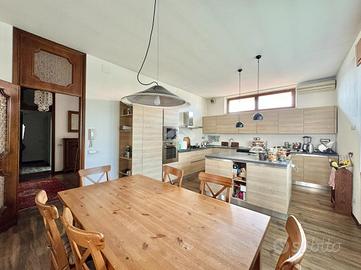 Varcata la soglia d'entrata troviamo un ampio ingresso che ci conduce al piano superiore in cui si sviluppa la luminosa zona living di 55 mq con accesso al terrazzo abitabile con vista sul Castello superiore.