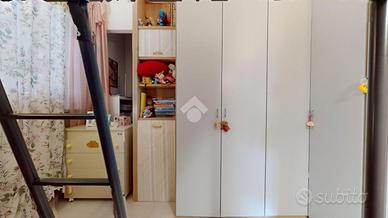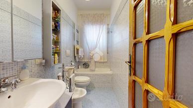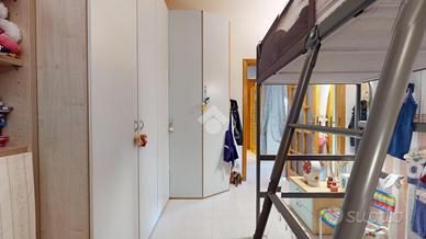 Proseguendo, si accede alla zona giorno luminosa con sala da pranzo, seguita da una prima cameretta (con possibilità di creare una cabina armadio), una camera matrimoniale nella quale è stato realizzato il cappotto termico e infine il bagno principale con vasca.