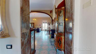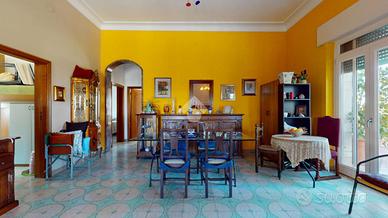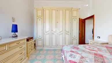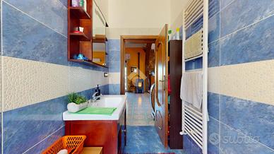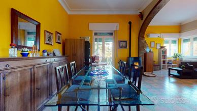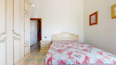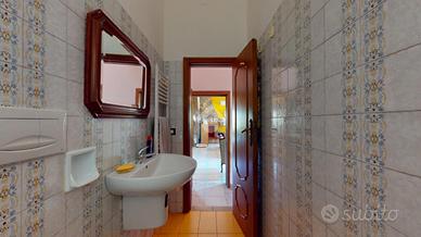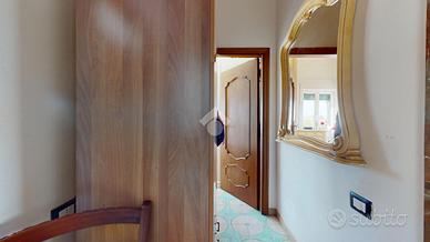L'ingresso avviene tramite una breve rampa di scale che conduce alla zona giorno, ampia e molto luminosa, dotata di camino e di un balconcino con piacevole vista panoramica. A seguire troviamo la sala da pranzo, la cucina abitabile con secondo accesso esterno e due bagni: il primo con sanitari, il secondo con doccia.