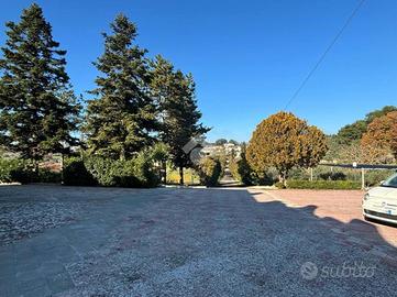 La proprietà si apre con un elegante cancello che introduce a un suggestivo viale alberato, conducendo a un grande piazzale pavimentato, perfetto per parcheggiare comodamente più auto.