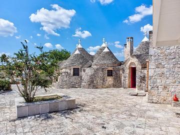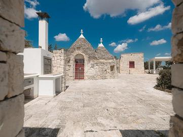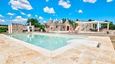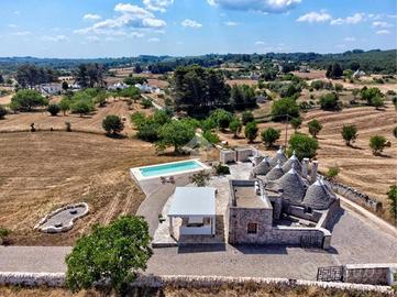 In Contrada Chirulli, sulla strada per Noci e a soli 7km da Martina Franca, proponiamo in vendita un affascinante complesso di trulli a 8 coni con piccola lamia, finemente ristrutturati, con piscina di 40mq e ampio terreno edificabile di 16.695mq.