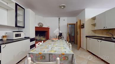 L'ingresso all'abitazione avviene attraverso una veranda in legno, che introduce nella zona giorno luminosa, composta da sala da pranzo, cucina e camino, creando un ambiente accogliente e funzionale. Completa la zona giorno una piccola dispensa.