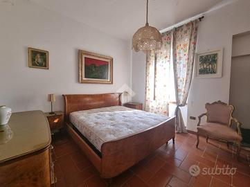 Tramite scala esterna si accede al secondo piano, dove troviamo l'abitazione con ballatoio d'ingresso su soggiorno con angolo cottura rifinito con maioliche di deruta, camino, un bagno finestrato con vasca e due camere matrimoniali con vista panoramica.