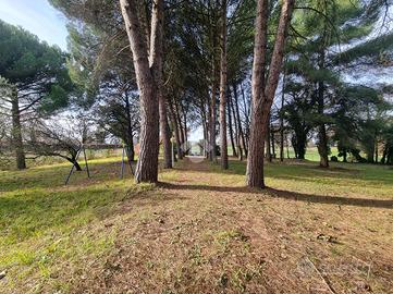 La proprietà è completamente recintata con doppio ingresso carrabile elettrico. Il terreno, di 8.000 mq circa è prevalentemente pianeggiante. Presente anche cisterna raccolta acque piovane.