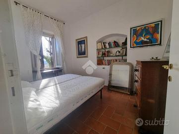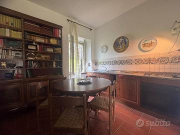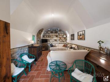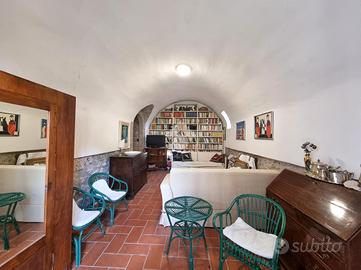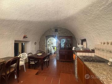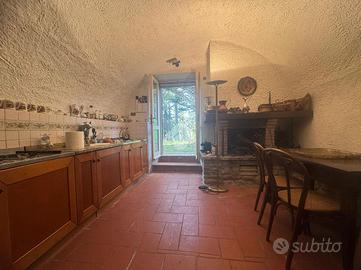 Con una metratura di 120 mq, la villa dispone di un piano terra molto caratteristico, con pareti in pietra e soffitti a volte, dove troviamo un soggiorno, un'accogliente cucina con camino, entrambe con accesso diretto al giardino ed un carattertistico bagno sempre con soffitti a volte.