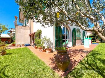 Marina di Massa - A pochi passi dal centro e vicino alle spiagge, proponiamo elegante villa indipendente su tre livelli in ottimo stato, con giardino privato e 2 posti auto interni.