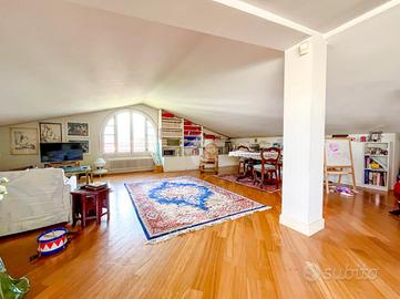 Il piano mansardato è stato adibito a zona hobby con un'ampio spazio living con affaccio sulle Apuane, una camera da letto doppia ed un bagno privato.