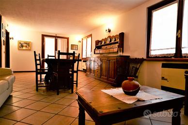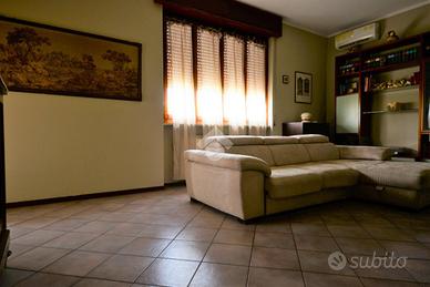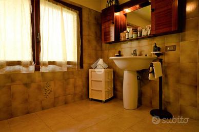 In centro paese, la zona è tranquilla e ben abitata, il supermercato e tutti i principali servizi sono raggiungibili a piedi. La casa è stata costruita a metà degli anni '80, e nel corso degli anni è sempre stata oggetto di lavori di manutenzione e migliorie. Si tratta di una villa singola già predisposta per accogliere due nuclei familiari, infatti ha un appartamento al piano terra ed uno al primo piano. Un giardino di 400 mq in parte verde e in parte piastrellato, circonda l'abitazione, data l'ampiezza degli spazi esterni è stata montata una piscina fuori terra. Un porticato di 50 Me fa da atrio al portoncino d'ingresso dell'appartamento al piano terra. L'accesso è direttamente nella zona giorno, dove un salone doppio in lunghezza con il camino accoglie chi entra nell'appartamento. Dalla sala si accede alla cucina, e un disimpegno accompagna alla camera da letto ed alla sala da bagno. La cucina è un ambiente non grandissimo ma confortevole e comodo in cui è possibile anche pranzare se si è in due. La camera da letto è ampia ed ha la finestra che affaccia sul porticato. La sala da bagno ha la vasca angolare e la doccia. Dal disimpegno si accede anche alla cabina armadio/ ripostiglio che è collegato al box auto. Nel box auto è stato creato un angolo lavanderia, con lavabo e lavatrice. Al primo piano un disimpegno fa da ingresso ed accopmpagna alla cucina, alla sala ed un altro disimpegno che conduce alla zona notte. La cucina è abitabile ed è stata recentemente oggetto di ristrutturazione, è un ambiente molto ampio e luminoso. Il salone è stato arredato con un divano con penisole di grandi dimensioni, ma la stanza è grande e permette di arredare a proprio piacimento inserendo divani e un tavolo da pranzo per chi lo desidera. La sala e la cucina hanno la portafinestra che da accesso allo stesso balcone. Nella zona notte invece si trovano la cameretta, la camera da letto matrimoniale con cabina armadio e il bagno. Tutte le porte interne sono state cambiate di recen...