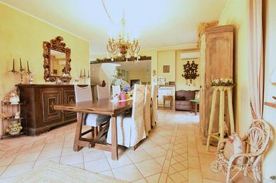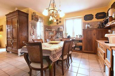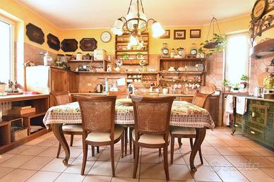 Al piano terra, l'ingresso accoglie direttamente nella sala da pranzo, adiacente a una spaziosa cucina abitabile. L'ambiente si apre poi su una raffinata zona living con camino, calda e accogliente, dalla quale si accede a un ampio portico verandato. La zona notte, ben separata dalla parte giorno, ospita tre camere da letto, di cui una con bagno privato, oltre a un secondo bagno finestrato con vasca.