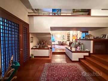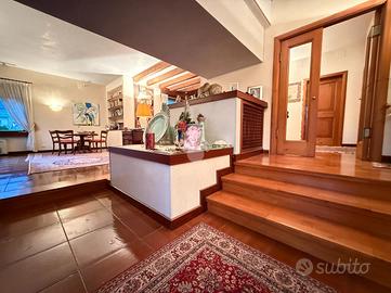 Tramite l'ingresso indipendente si accede al giardino esterno, sviluppato su i quattro lati della proprietà, caratterizzato da una dependance ben rifinita, con caminetto e sala da pranzo esterna per momenti di relax e convivialità.