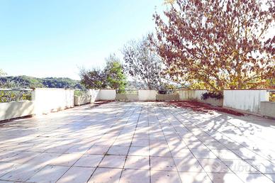 Al piano più basso si trovano due garage spaziosi, accessibili tramite una suggestiva discesa alberata, utili non solo per il parcheggio ma anche come locali deposito.